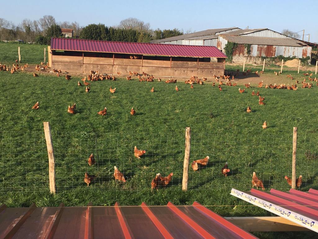 Nous avons une petite exploitation d’1.1 hectare de prairie naturelle, sur laquelle nous avons implantés notre élevage de 1 000 poules pondeuses biologique en plein air.
